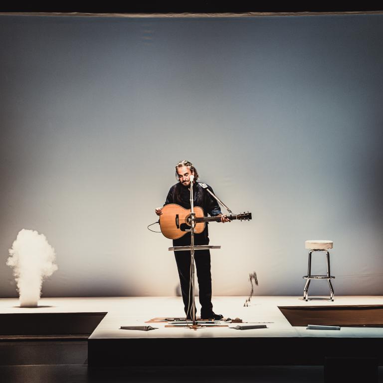 Le Printemps des Comédiens peut se vanter de suivre à la lettre un cycle Gremaud. De La Conférence de choses à Gisèle et Carmen, le spectateur assidu aura tout exploré de l’univers fantasque, loufoque parfois, du metteur en scène suisse qui revendique le rire comme vertu cardinale. Pour ce quatrième opus, point d’héroïne mythologique, point de danseuse classique, pas de bohémienne poignardée mais un chanteur, Stephan Eicher. Déjà porté sur l’inattendu : ne l’a-t-on pas vu se faire accompagner par un orchestre d’automates ? Ou partir en tournée sur un radeau ? Là, c’est La conférence de choses, son humour bric-à-brac qui ont été son déclencheur. Eicher a sollicité Gremaud - ou l’inverse - et voilà comment un concert devient une performance où les mots des chansons, les mots du chanteur, les clins d’œil auditifs - si l’on ose dire - s’entremêlent.