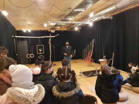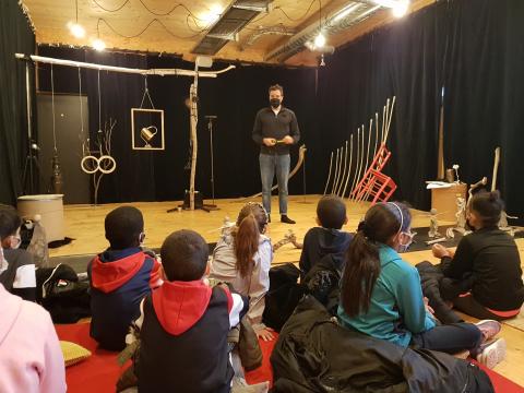 Les élèves de l'école Senghor ont pu assister par 1/2 groupe à la sortie de résidence de Fabien Coulon le 15 janvier 2021.