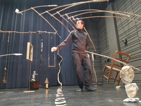 Fabien Coulon circassien d'objets et mime...nous invite au travers de son regard à nous émerveiller face aux petits riens à côté desquels nous passons et qui font des petits touts. Mais plus intérieurement il crée un espace qui héberge un imaginaire poétique et nous parle humblement...de la Vie !